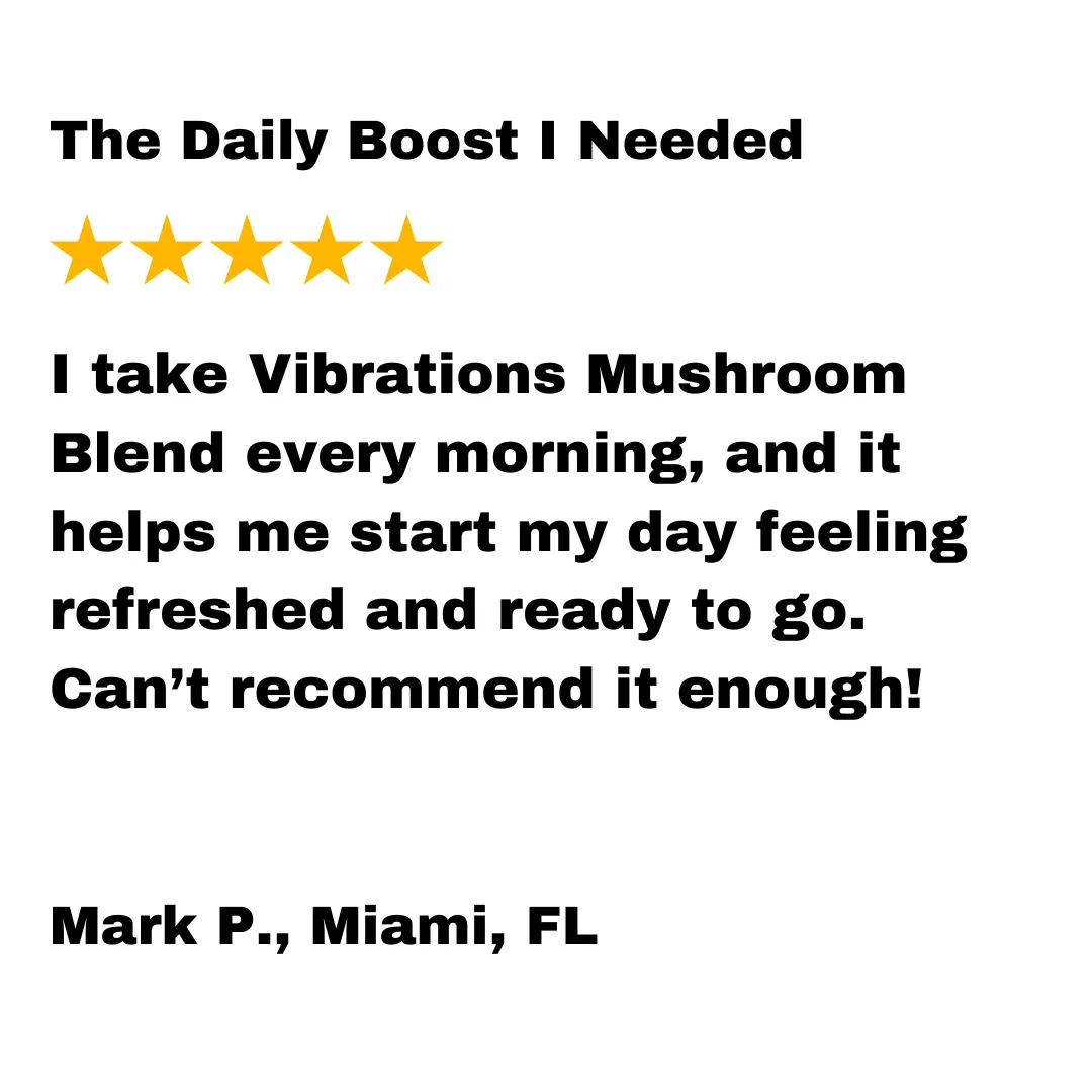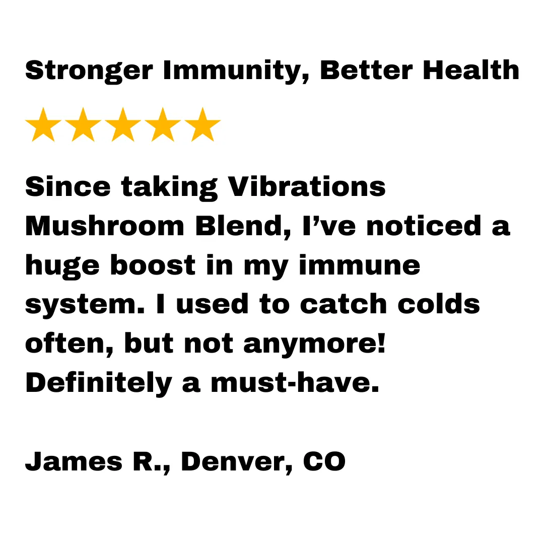 Thousands of people trust Vibrations Mushroom Blend to support their immune system, mental clarity, energy levels, and overall well-being—naturally.
